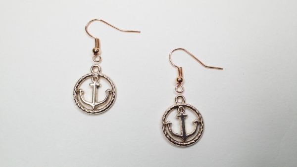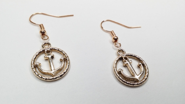 Schöne Ohrringe mit hell rosegoldfarbenen bzw. hell goldfarbenen Ankern als Anhänger.