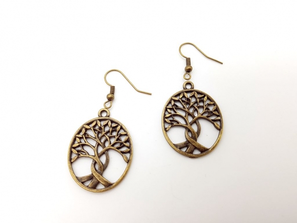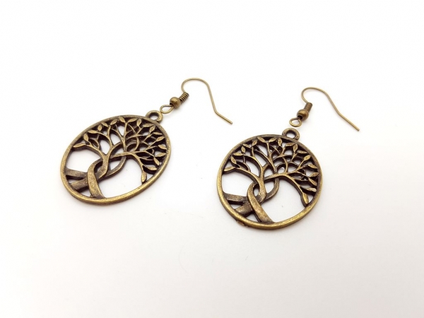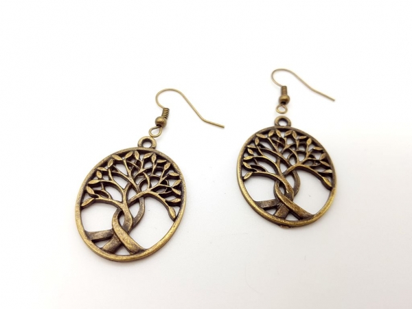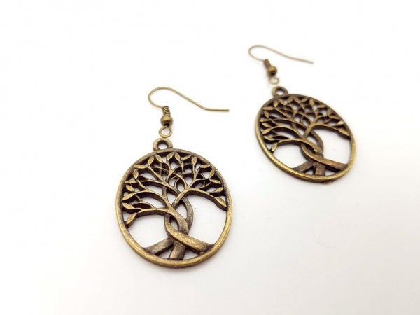 Schöne Ohrringe mit bronzefarbenen Bäumen als Anhänger.