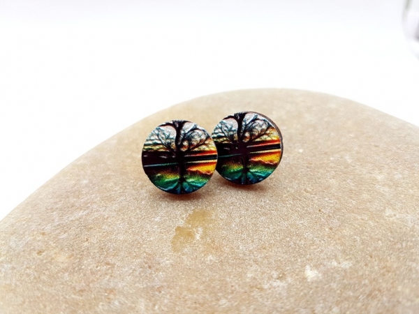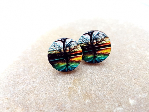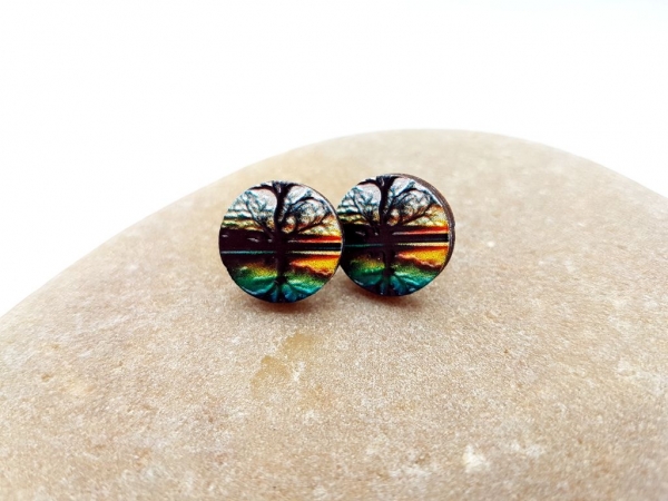 Wunderschöne 3D Ohrstecker aus Naturholzscheiben. Der 3D erhabene und "fühlbare" Effekt, entsteht durch die besondere Motivbemalung der Holzscheiben.