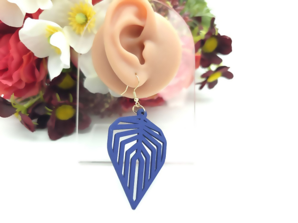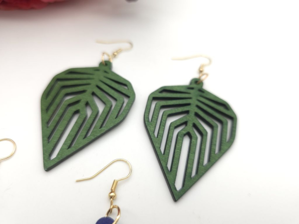 Schöne Ohrringe mit Holzteilen als Anhänger - in Blattform.
