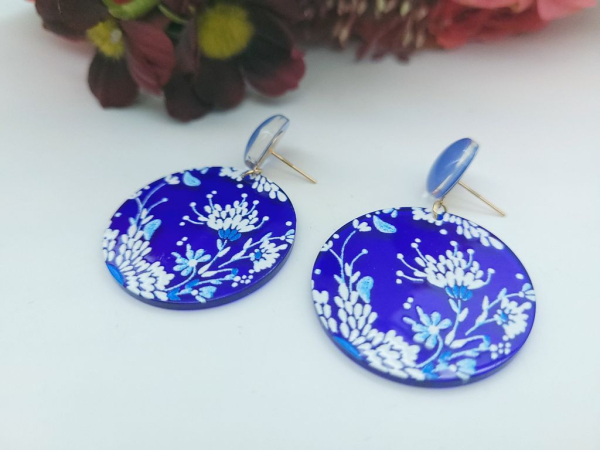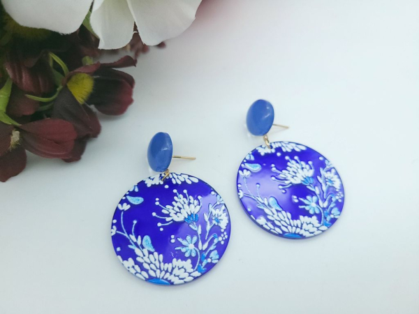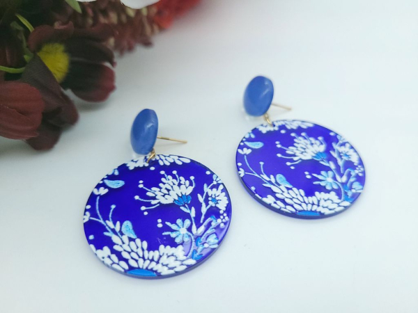 Preview: blaue Blumen Ohrhänger mit Stecker