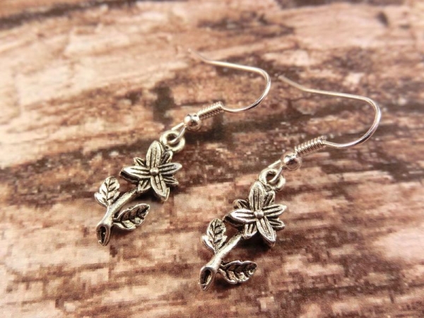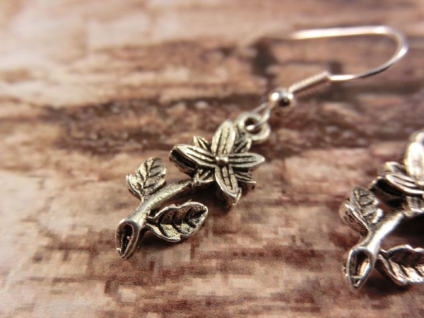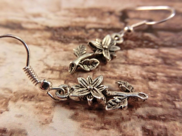 Witzige silberfarbene Ohrhänger die aussehen wie kleine Blümchen.