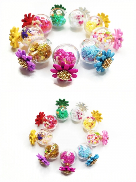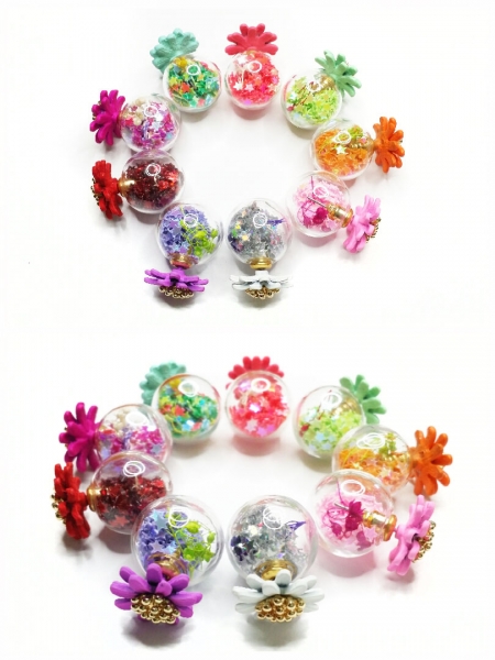 Eine Art Hartplastik Kugeln gefüllt mit zauberhaften kleinen Blüten und Sternchen Teilen.