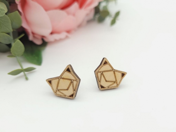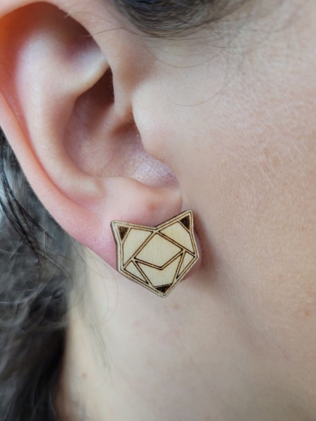 Wunderschöne - Handmade - Fuchs Kopf Motiv Ohrstecker aus Holz.