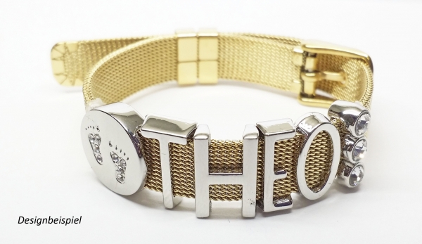 Jeder Schieber kann einzeln am Armband ausgewechselt werden. Sie lassen sich sowohl einzeln oder in einer größeren Anzahl am Armband tragen. Dein Armband wird, versehen mit diesen individuell auswählbaren Schiebern, zu deinem unverwechselbarem Unikat am Arm.