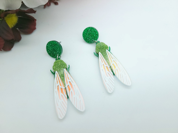 Glitzer Zikaden Ohrhänger mit Stecker