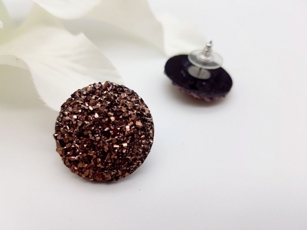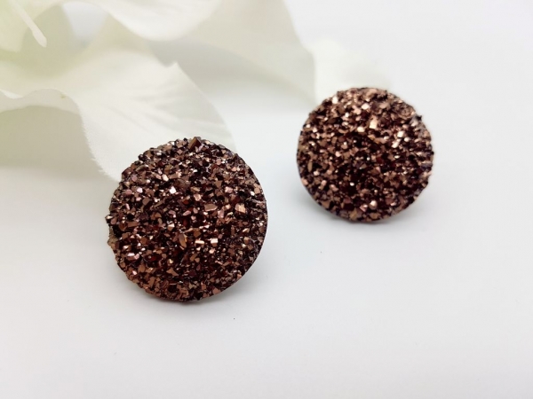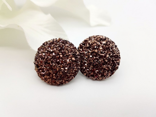 Schöne Ohrstecker aus großen, braun changierend glitzernden Cabochon.