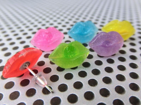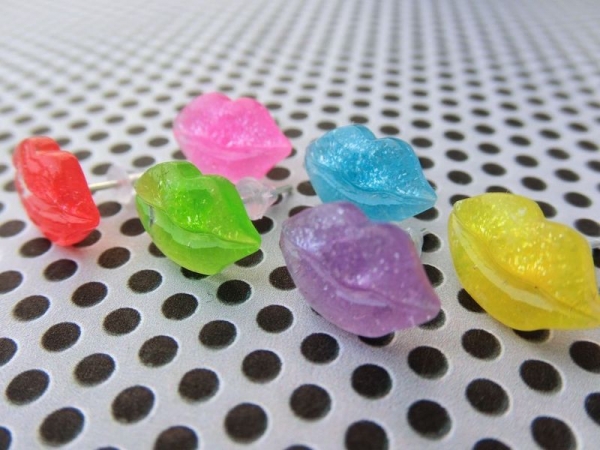Lustige Ohrstecker in Form von einem Kussmund.