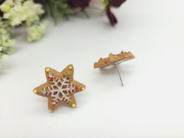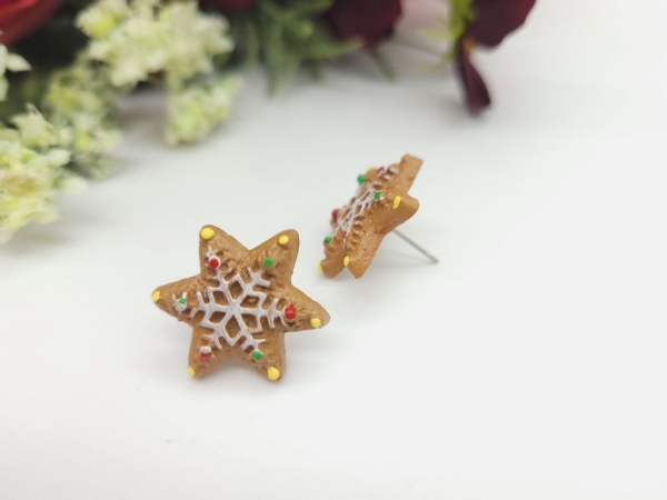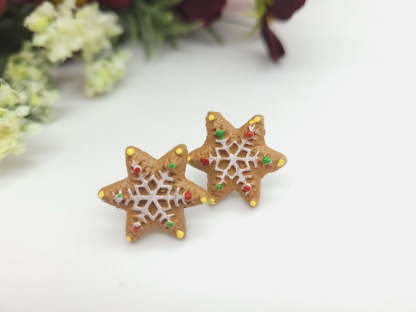 Schöne Lebkuchen Stern Ohrstecker in braun, weiß, gelb, rot, grün.
