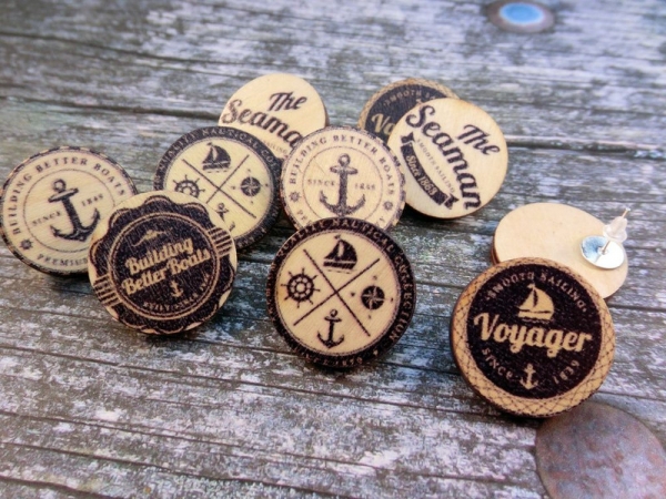 Erhältlich in 5 verschiedenen Designs - "The Seaman", großer Anker, "Building better Boats", kleine Symbole und "Voyager".