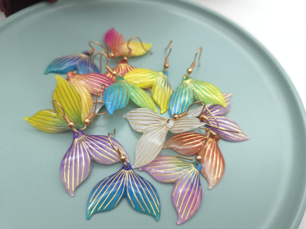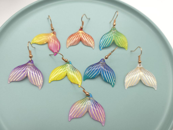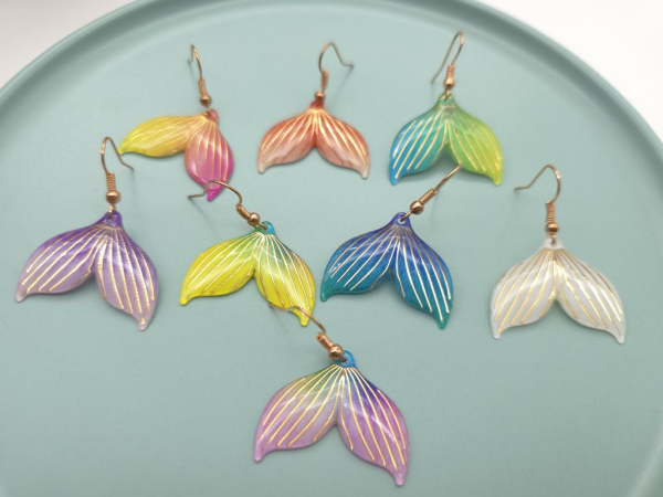 Wunderschöne Ohrringe mit Meerjungfrauenflossen Anhängern, in verschiedenen Varianten und schönen schimmernden Farben.