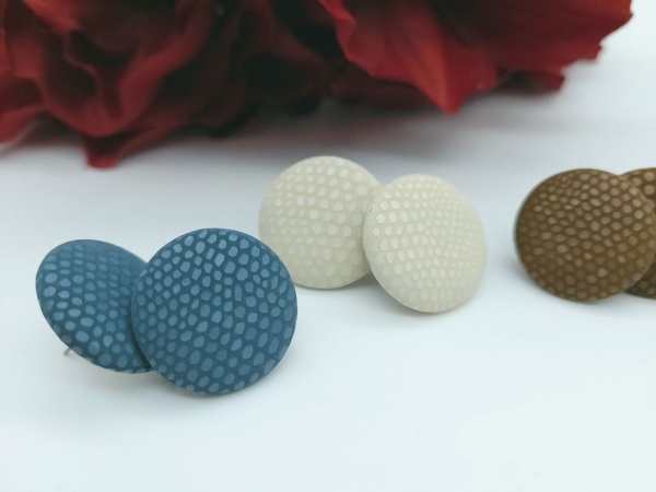 Wunderschöne Muster Stoff Ohrstecker. Erhältlich in den Farben beige, braun, schwarz, petrol