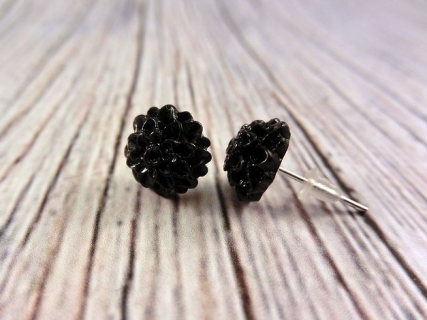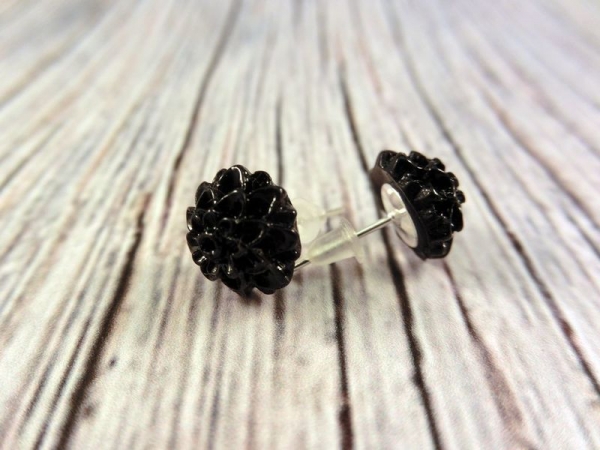 Schicke Ohrstecker aus schwarzen mini Harz Cabochon Blumen.