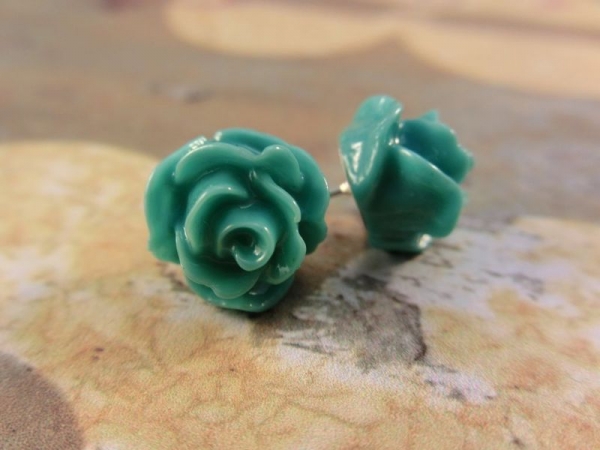 Rosen Blümchen Flower Ohrstecker Blüte türkis