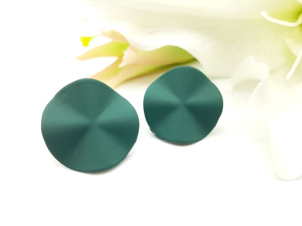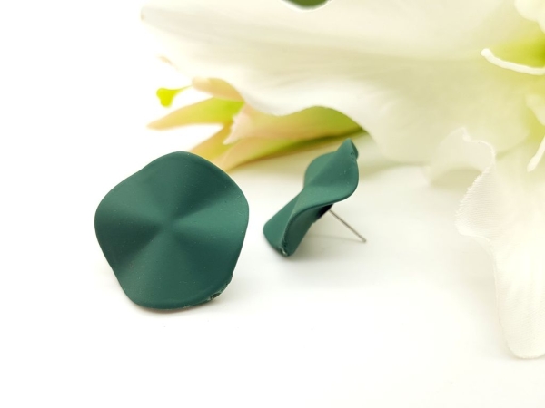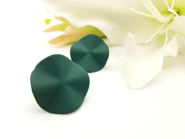 Wunderschön schlichte Falten Ohrstecker, rund. Hier in dunkelgrün.