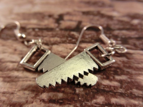 Witzige silberfarbene Ohrhänger in Form von kleinen Sägen.