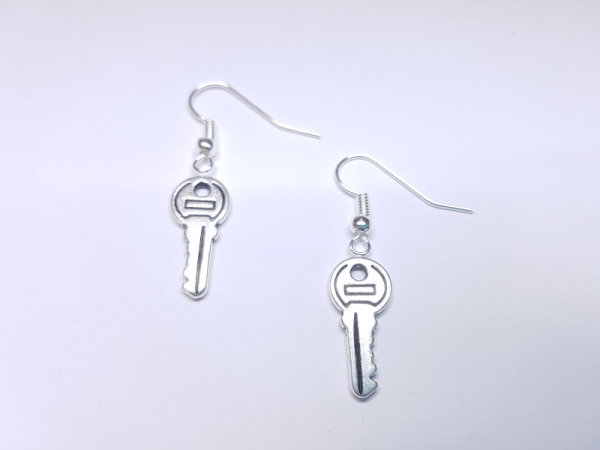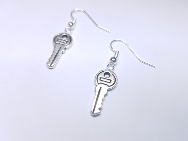 Witzige Ohrringe mit silberfarbenen Schlüsseln als Anhänger.