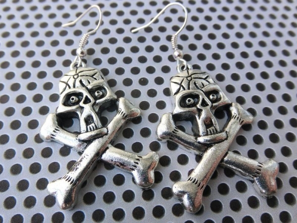 Schöne Totenkopf Anhänger als Ohrringe in silber mit schwarzer Linienführung und Einkerbung für einen schönen 3D Effekt.
