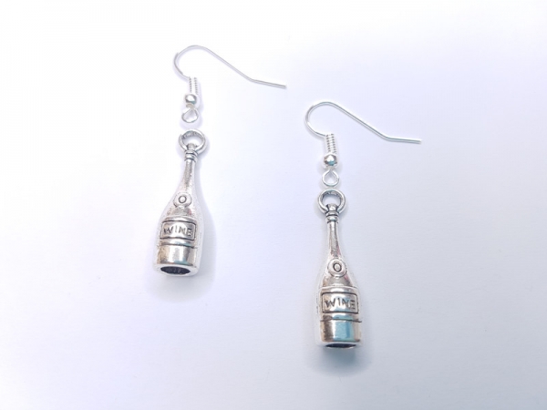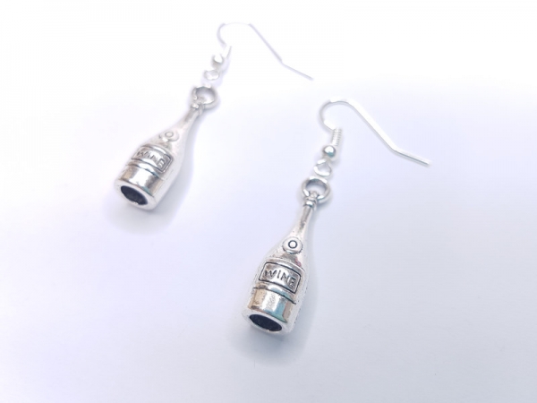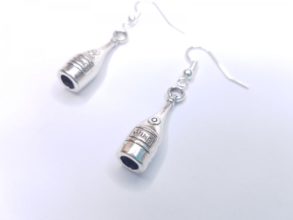 Witzige Ohrringe mit silberfarbenen Weinflaschen als Anhänger.